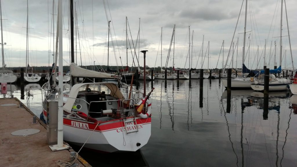 Am Freitag den 21 Mai sollte es los gehen, und Andree ist bei uns zu Hause in Hannover angekommen, und schon haben wir die erste Regel beim Segeln erkannt. Das Wetter hat es leider nicht zugelassen, dass wir am Samstag loskonnten und so sind wir erst am Samstag zum Boot, und habe die erste Nacht an Bord in Cuxhaven verbracht. Sonntag morgen ging es dann pünktlich um 7:00 Uhr mit der einlaufenden Flut los.