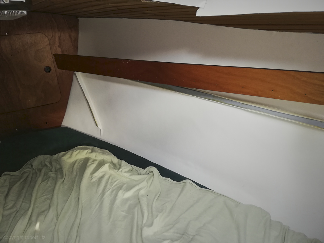 Dann nutze ich die Zeit das Schiff aufzuräumen. Die Kleberei der Wandverkleidung hat doch ein schönes Chaos im Boot angerichtet. Es tut gut, aus der Baustelle wieder ein begehbares Schiff zu machen. Wir machen auch zwei kleine Ausfahrten, wobei mir leider wieder etwas kaputt geht. Ein kleines Teil, aber doch wichtig. Der Schäkel der die Rolle der Genuaschoot hält und damit ist die Genua wieder „out of order“. Zwar nur ein Schaden von wenigen Euro, aber der Frustpegel steigt exponentiell.